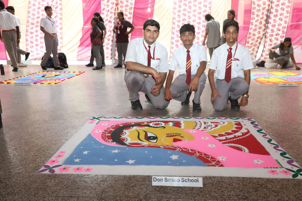 The first day of Bosco Fiesta highlighted the vibrancy of Bollywood. The auditorium glowed with bright colours, festive lights, and traditional motifs, creating a cheerful mood. Participants arrived in eye-catching costumes, adding to the cinematic charm. The Indian Folk Dance competition saw energetic performances reflecting India’s cultural diversity, with DPS Noida securing the first prize. The Rangoli Art contest turned the floor into a vivid canvas of imagination. Holy Child Auxilium and Don Bosco Alaknanda impressed equally, sharing the top honours.